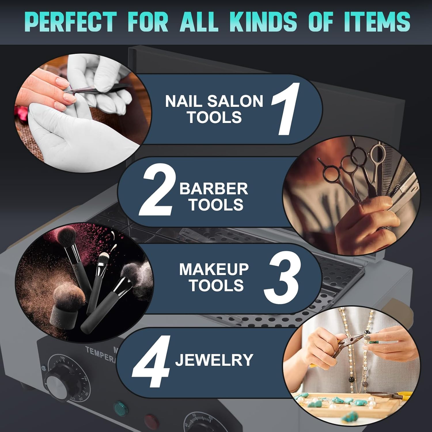 - The high temperature metal tool cleaning box is a great clean device for barbershops,salons,pet hospital and dental clinic. Such as the hair scissor and beauty tools like tweezers, which need quick clean in between uses. This metal tools cleaner device can eliminate hidden in crevices that cleaning wipes can't reach. With the metal tools cleaner box can effectively cleans your device quickly in 10 mins. Protect the health of your customers and family by keeping metal tools clean regularly.