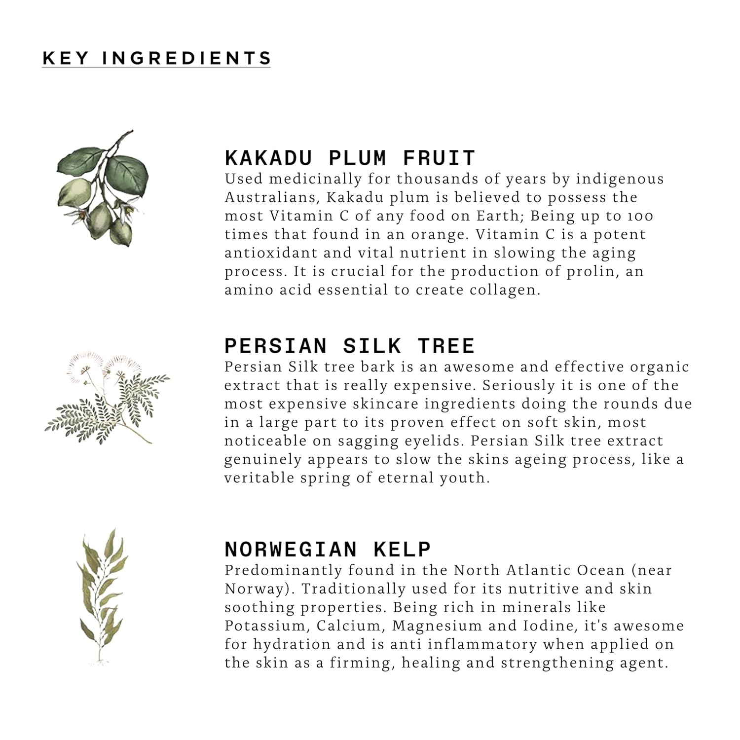 - 97% Natural Based Ingredients - Kakadu Plum Fruit Extract, Norwegian Kelp, Persian Silk ๏ปฟTree, Swamp Maple Bark Extract, Horopito, Rosemary Extract to name a few!