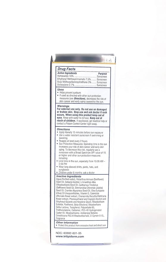 - Trilipiderm uses natural ingredients to provide you with optimal hydration and contains certified Broad Spectrum SPF 30 to provide ultimate sun protection. Plant-derived lipids moisturize while simultaneously preventing excessive moisture loss.