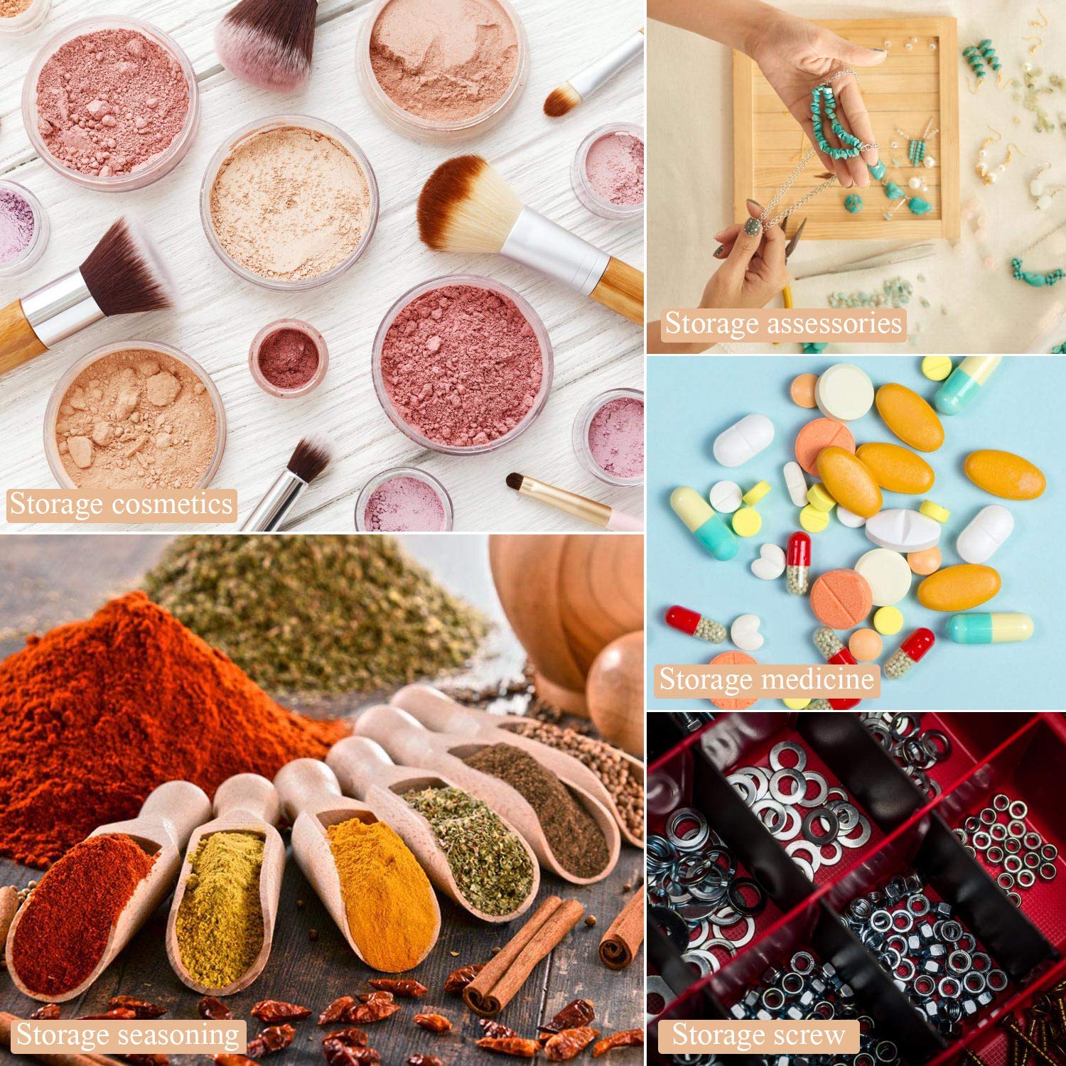 - Multi Ppurpose: The small containers are also suited to hold samples of loose leaf teas, spices, small jewelry, nail decortaion and much more
