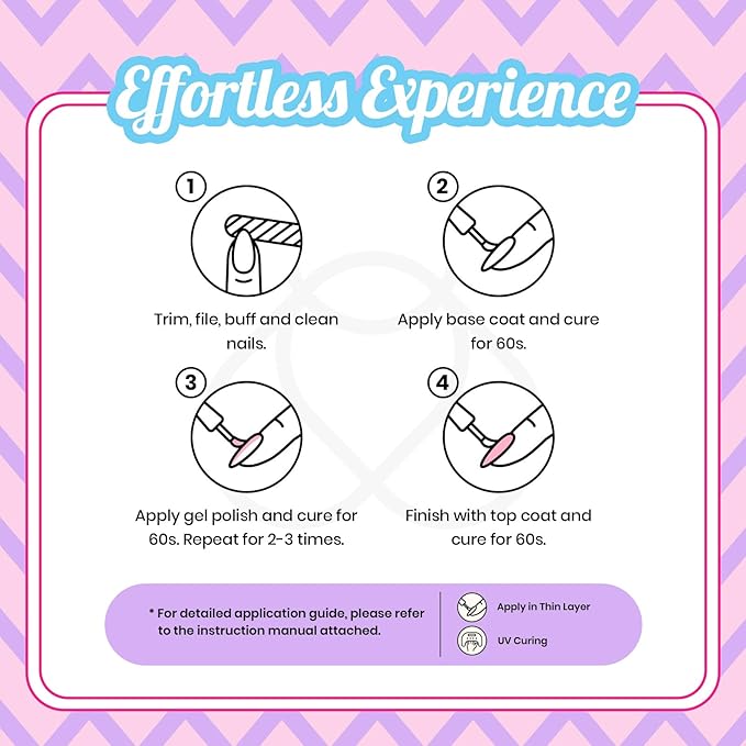 - Easy Application and Good Tenacity: Beetles gel polish kit is long lasting for 21+ days with perfect shine under proper application. Cure under LED/UV light for 90-120 secs. Base and Top coat required.If gel feels thick or tacky, place in hot water for 1-2 minutes, remove from water and shake well.This item is UV gel. It is still sticky after curing. It must be used with a base coat and top coat! This item does not include base&top coat, which needs to be purchased separately.