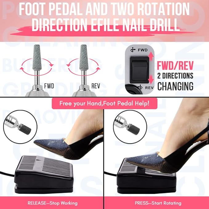 - Multi-functions Electric Nail File: Makartt acrylic nail grinder is used for buffering, grinding, sharpening, sanding, polishing for acrylic Nails, remove nail gels, artificial and cuticle remover. It can fit for the 3/32 drill bits. 30pcs sanding bands are also included, what's more, we also provide foot pedal function, you can choose hand or foot mode for your convenience