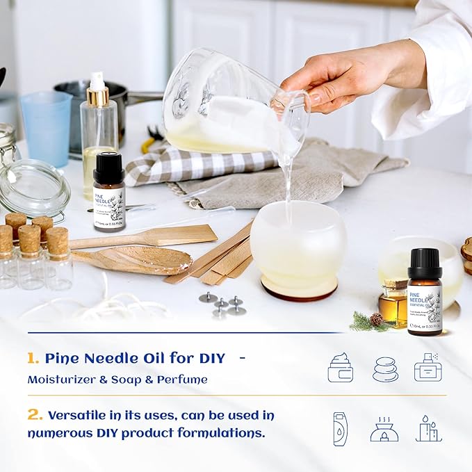 - Multi-Purpose: Pine needle essential oil has a multi-purpose natural remedy with a fresh woody and winter forest airy aroma that can help relax the mind, balancing emotions. Repairs skin imperfections and smoothes the skin