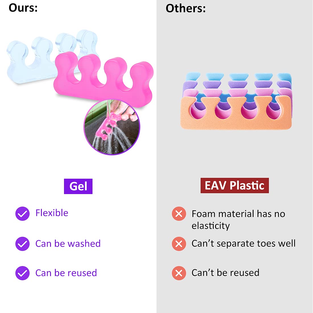- đčăReusable, easy to cleanăToe Separators for Pedicurecan be cleaned repeatedly,and jelly material that can be used multiple timesis not easy to deform.Upgraded version of Foam pedicure toe separator.Rinse once with water before use.ăServiceăWe love our customers,If you are troubled by product problems,please contact us as soon as possible to solve it for you,including return or exchange.