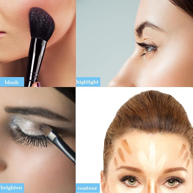 - Unique design coming with one makeup brush set and one powder sponge.From lining, shading, and blending to everything in between to meet your general daily makeup needs for application.