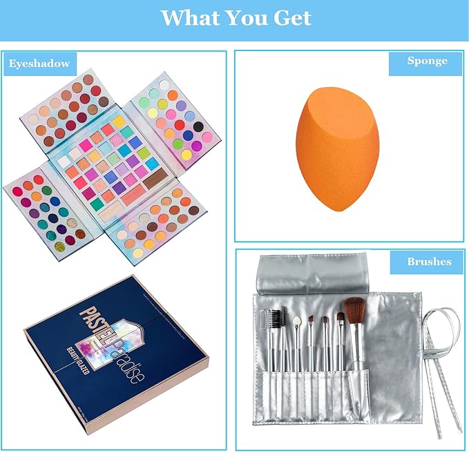 - You get totally 82 shades with mattes,shimmers,highlighters, blushes and contours/bronzer in one makeup palette,which make it easy to create a wide variety of trendy looks.It provides natural and dramatic hues.The deep hues perfect for nighttime looks and softer hues more suitable for natural daytime makeup looks.