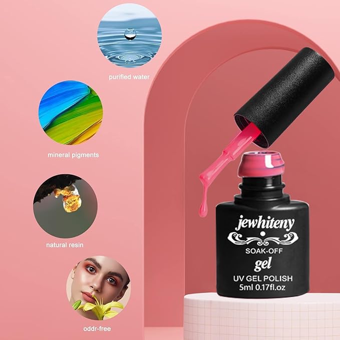 JEWHITENY 45PCS Gel Nail Polish Kit, 42 Colors 5ML Gel Polish Nude Gray Pink Blue Soak Off Glitter Nail Art Starter Kit Beauty Gifts Set for Women Girls Valentines Mother's Day Gift