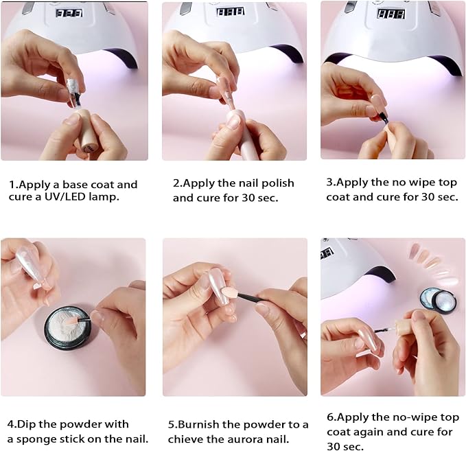 - Ultra Excellent Texture: The pearl nail powder is fine, high pigmented, and shimmery without particles feeling, so you can make your nails exquisite with an amazing aurora chrome effect. And the nail glitter is non-toxic, more durable, which does not harm your nails, using it more at ease. Make mirror effects for your nails with our excellent equality chrome powder set.