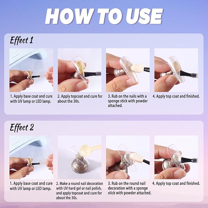 - Easy to Use: Be it, polish gel nail art beginners or nail charms professionals can be easily used for the best results. The beginners just apply with a sponge stick over a topcoat, and cure for about the 30s to get perfect nail art. For the nail stuff, it's a tech must-haves, is also a perfect nail decoration kits.