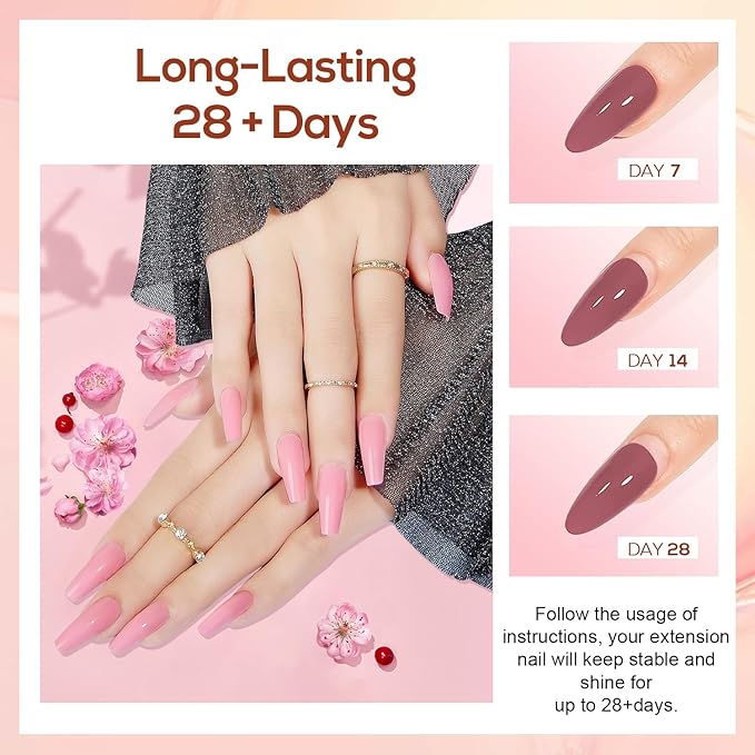 - Quick Building and Long Lasting:You wonโt struggle to try to use our poly nail gel kit. The instructions for using the extension gels are detailed and yet simple to understand.The builder gel can Build Beautiful Nail Extensions in 3 minutes even for a beginner!Poly nail extension gel is easy to make shape and will last about two week or longerใFor better adhesion, you can also apply nail dehydrator and primer which can make the nail last up to one month when applied appropriately.
