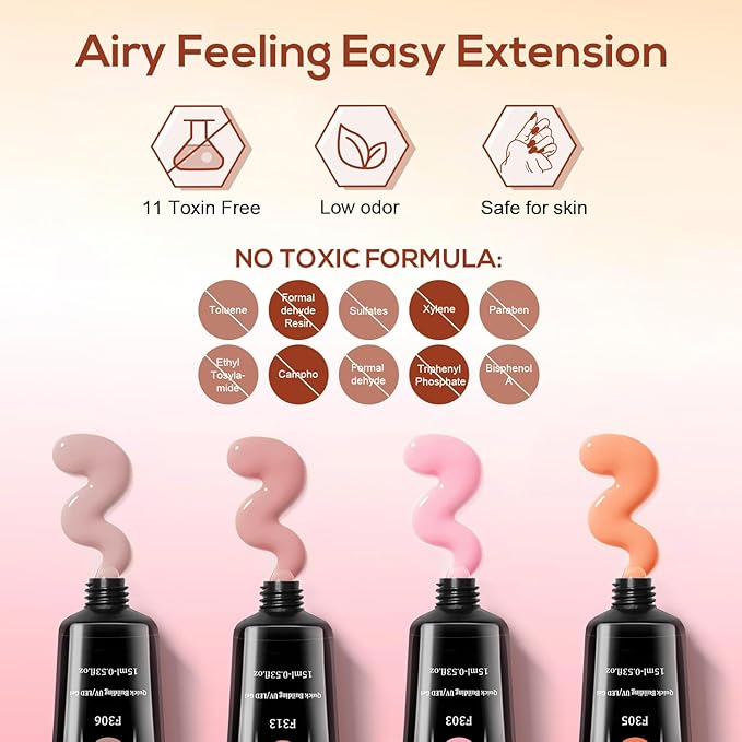 - Healthy,Natural,Strong,Flexible๏ผJEWHITENY poly gel made with non-toxic ingredients keeping your nails healthy with a low odor formula!Has high strength and toughness without cracking or peeling. superior to other nail extension products, and fits your nails seamlesslyใThe new upgraded formula makes your lengthened nails as flexible, strong and lightweight as natural growing nails.