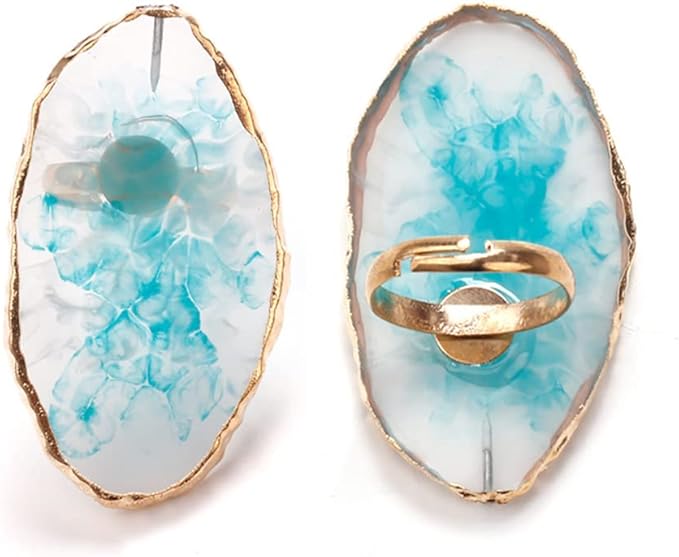 - Package includes: there are 3 pieces resin nail art palettes in the package, 1piece big resin palette with golden edge,2 pieces finger ring nail holder(blue&pink)