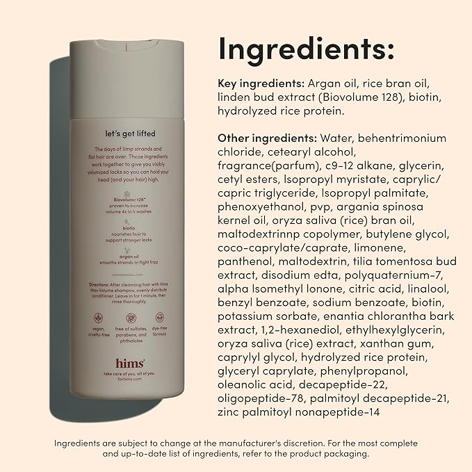 - Follicle Boosting Ingredients: A hydrating conditioner for men that visibly lifts limp hair with a follicle-boosting blend of biotin, argan oil, and Biovolume 128