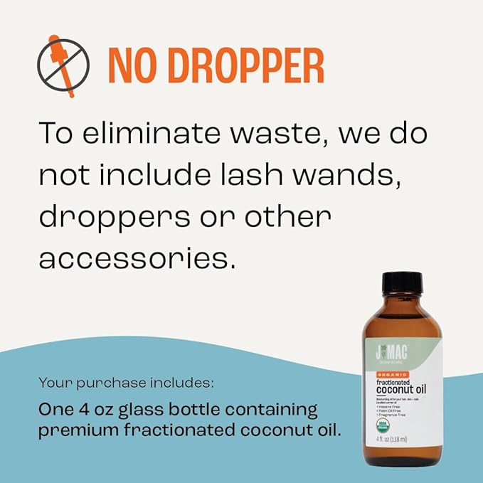 J MAC BOTANICALS Organic Fractionated Coconut Oil (4 oz Glass Bottle) Organic Carrier Oil and moisturizer