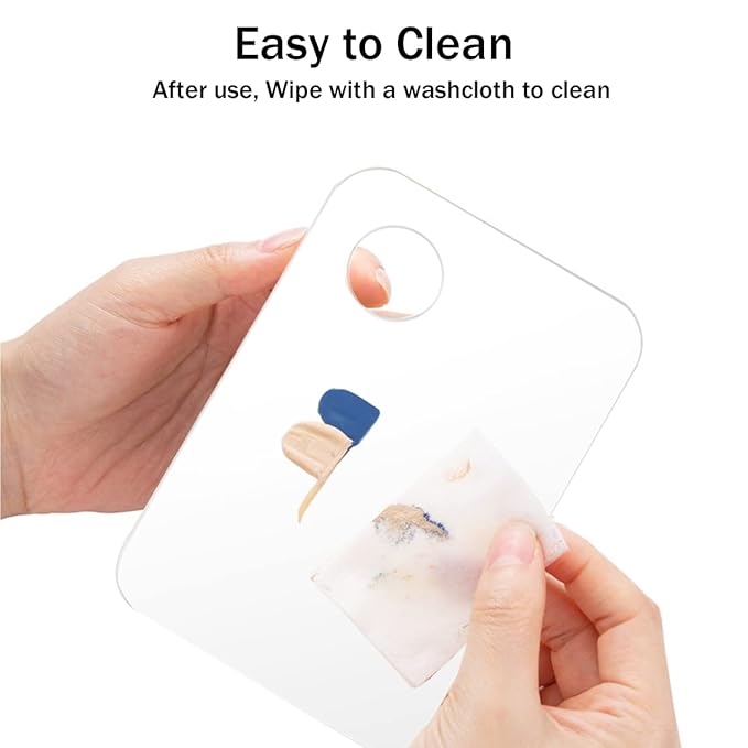 - Perfect Size: Foundation palette:15Ă—10cm/5.9x3.9inch,makeup spatula:15cm/5.9inch, it can fit your hands and let you have a gorgeous makeup, the exquisite package contains 2pcs acrylic makeup palettes and 2pcs stainless spatula, easy to fits your makeup bag, perfect size for traveling and taking along.