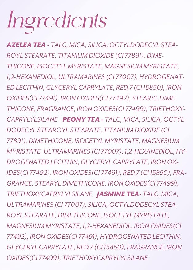 - đź’— FALL IN LOVE WITH BLOSSOM TEA: I'm Afternoon Tea Blusher Palette new edition in Blossom Tea Blended shade is a cool tone blusher that make your cheeks radiant like a flower with a subtle floral scent. Comes in 11.4 g / 0.4 OZ.