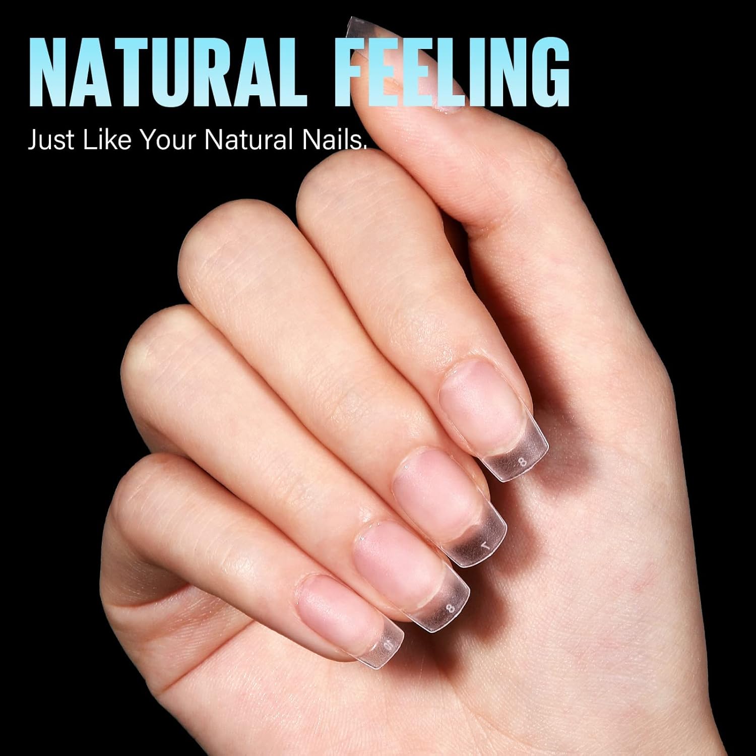 - 【Pre Buffed Nail Tips】The upgraded pre-buffed nail tips give you the privilege of "no file, no base coat". Protect your nail beds while saving time. Double-sided matte acrylic nails have stronger adhesion and can be pasted more firmly.