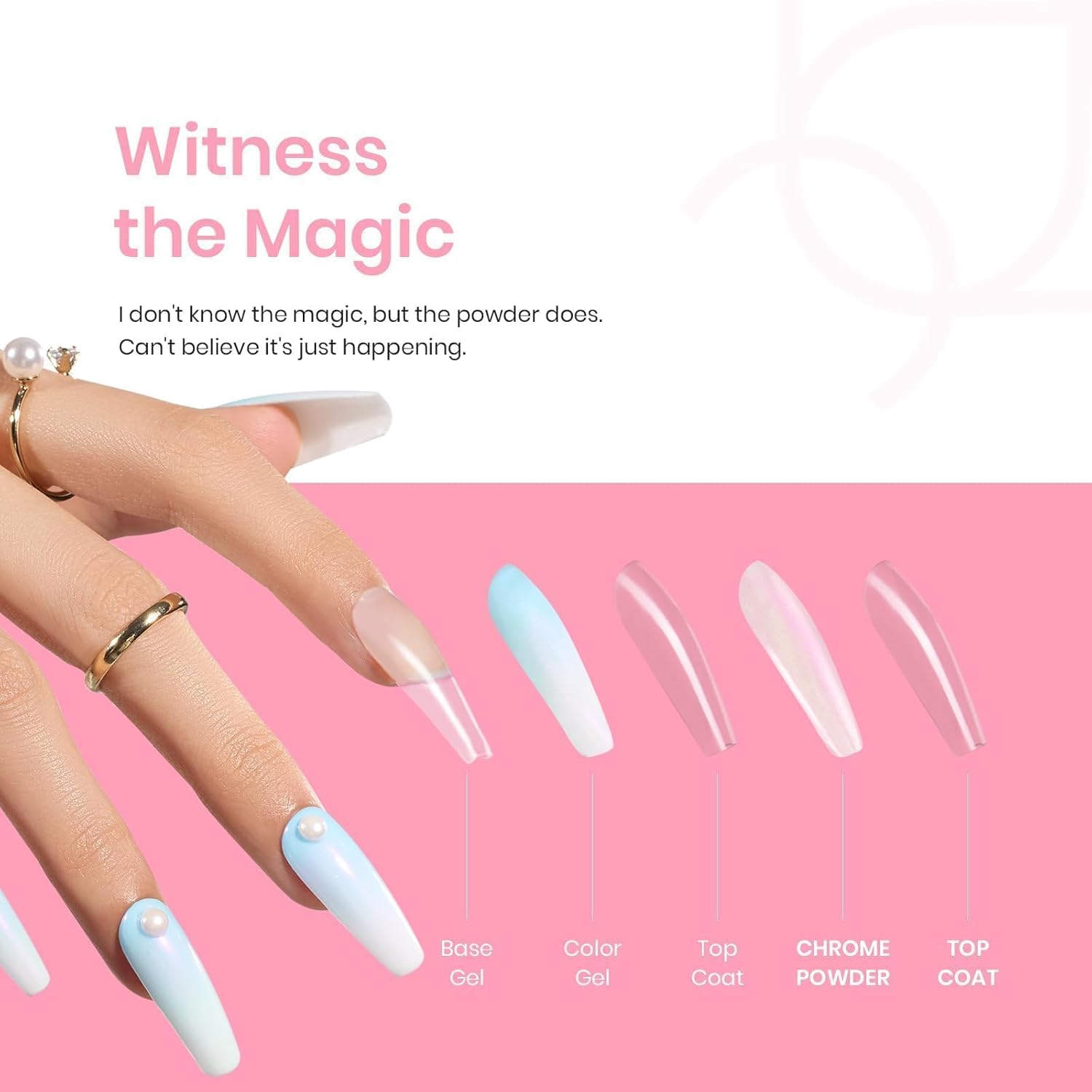 - WIDE APPLICATION: The nail powder is suitable to be applied on UV gel nails, acrylic nails, natural nails etc, a helpful DIY tool for nail art design. Different polish will give different actual effect.Trying different polish can also bring more fun to you with the chrome nail powder