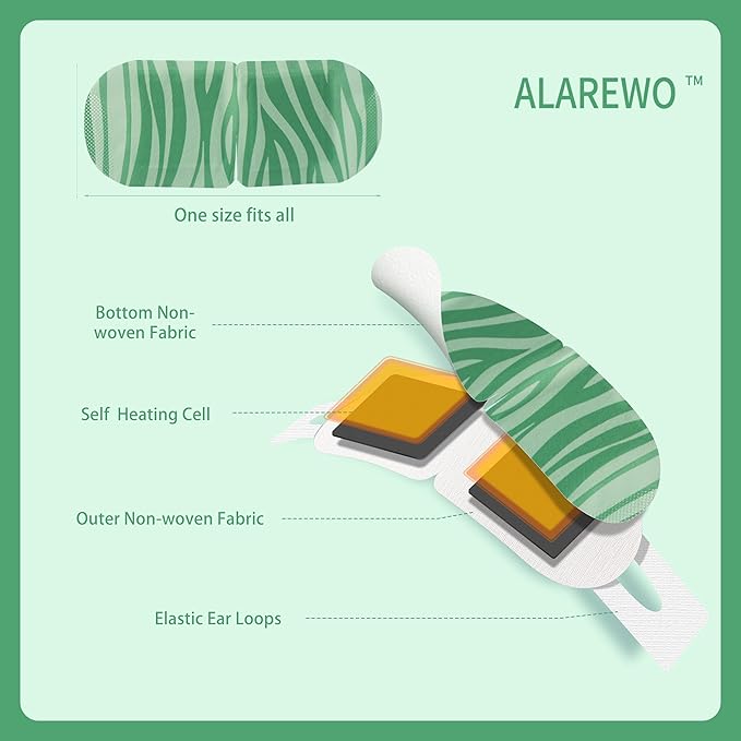 - Self-Heating & Portable-- This moist heating eye mask is air-activated, no need to plug in or microwaver to heat up. Able to warm up and moisturize your eyes quickly in a few seconds after being unsealed, odorless and non-medicated, easy and convenient to use. Each piece is individually packaged with foil aluminium pouch, small and lightweight, can be easily carried for business trip or travel, long plane or car ride, office or outdoors