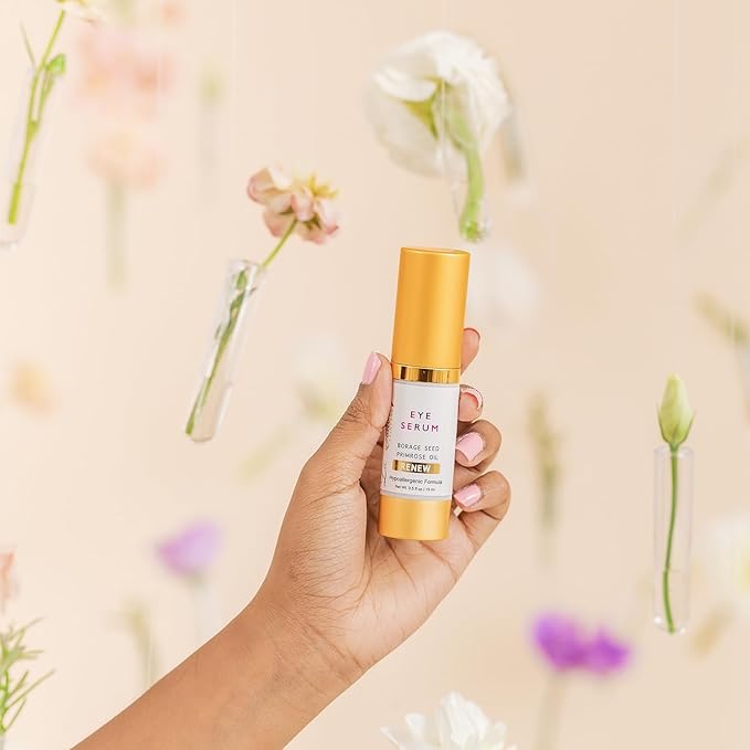 Renew Vegan Under Eye Serum for Dark Circles and Puffiness - Aging Skin Serum for Eye Bags, Fine Lines, Wrinkles, Crows Feet with Borage and Primrose - 0.5 Ounces