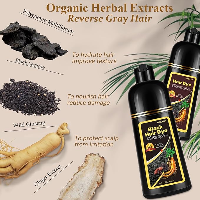 - 【Cleanse And Condition While You Color】: Our magic 3-in-1 hair color shampoo colors, cleanses, and conditions your tresses all at once! Make your hair soft, shiny and manageable after dyeing. Infused with botanical component like Polygonum Multiflorum to anti-gray hair; Ginseng to nourish hair follicles. (Perfect gifts for parents and elders)