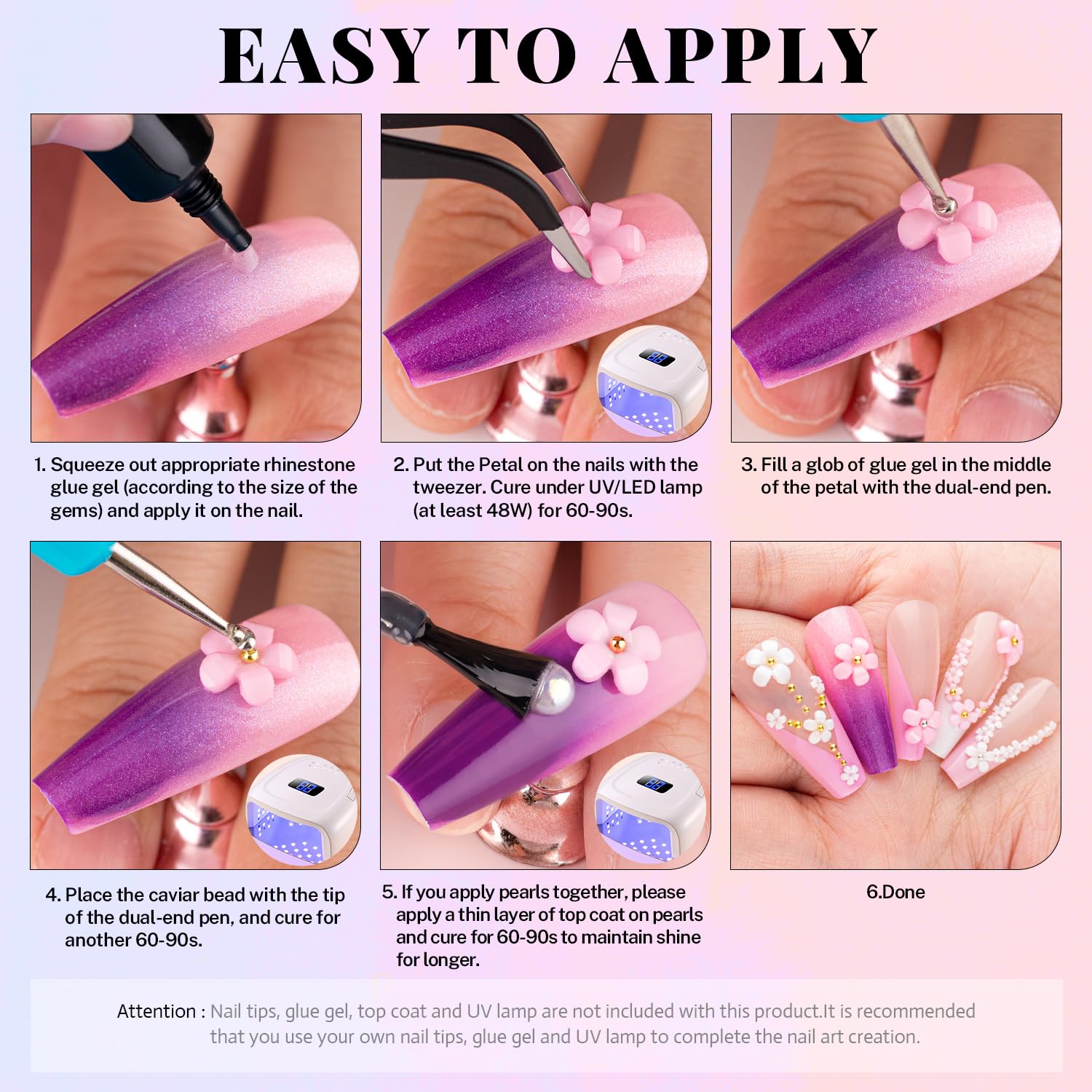 - đź’ŽNAIL ART BEAD -- You will receive 2 boxes of nail art decorations. Box 1: 3D resin flatback flowers in pink color and white color combined with metal beads. Box 2: mixed nail art accessories. The functional Tools for nail design are also attached, including 1pcs dual-end brush & dotting pen, 1pcs pick-up pen, and 1pcs tweezer.