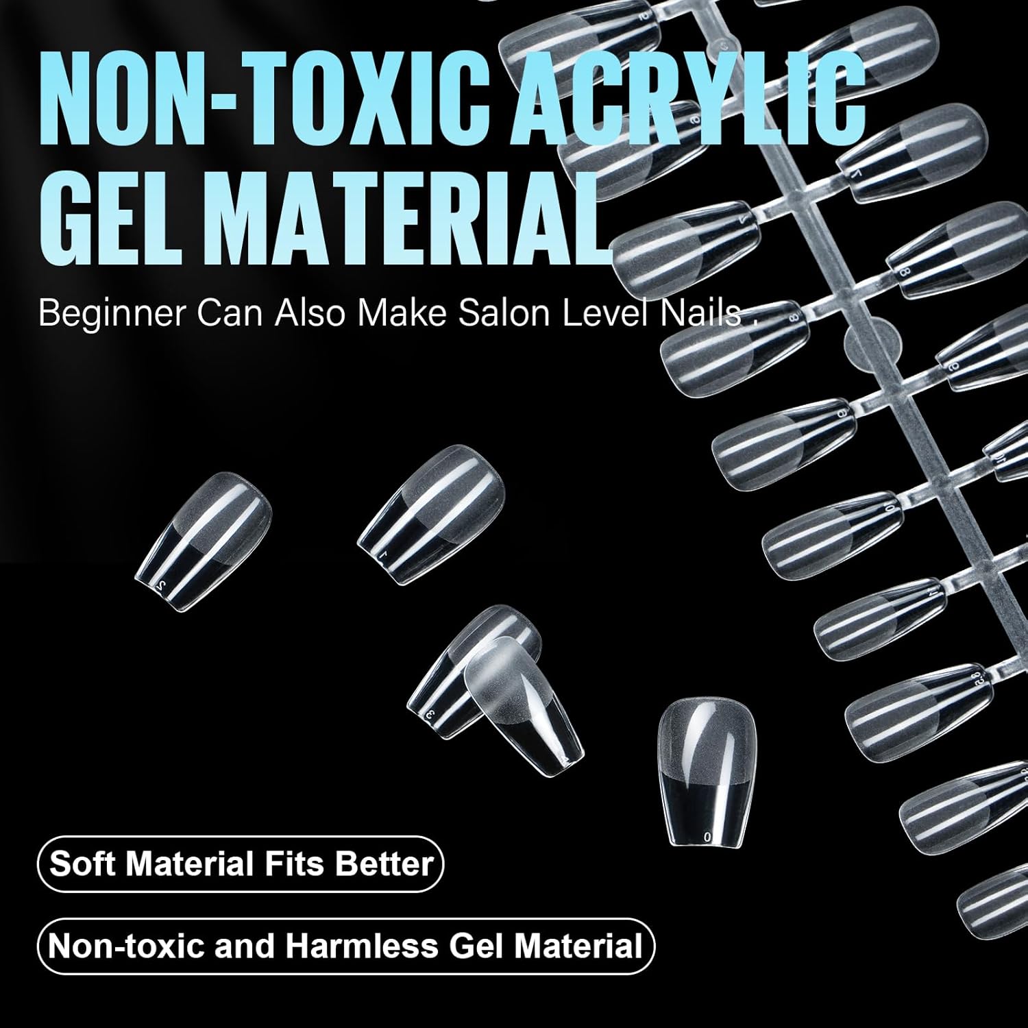 - 15 Sizes 240 Pieces: Our medium coffin nail tips come in 15 different sizes, totaling 240 pieces. In addition to the common 12 sizes, we've included 3 additional sizes for your convenience. The gel nail tips are numbered at the top, making it easier to find the perfect fit.