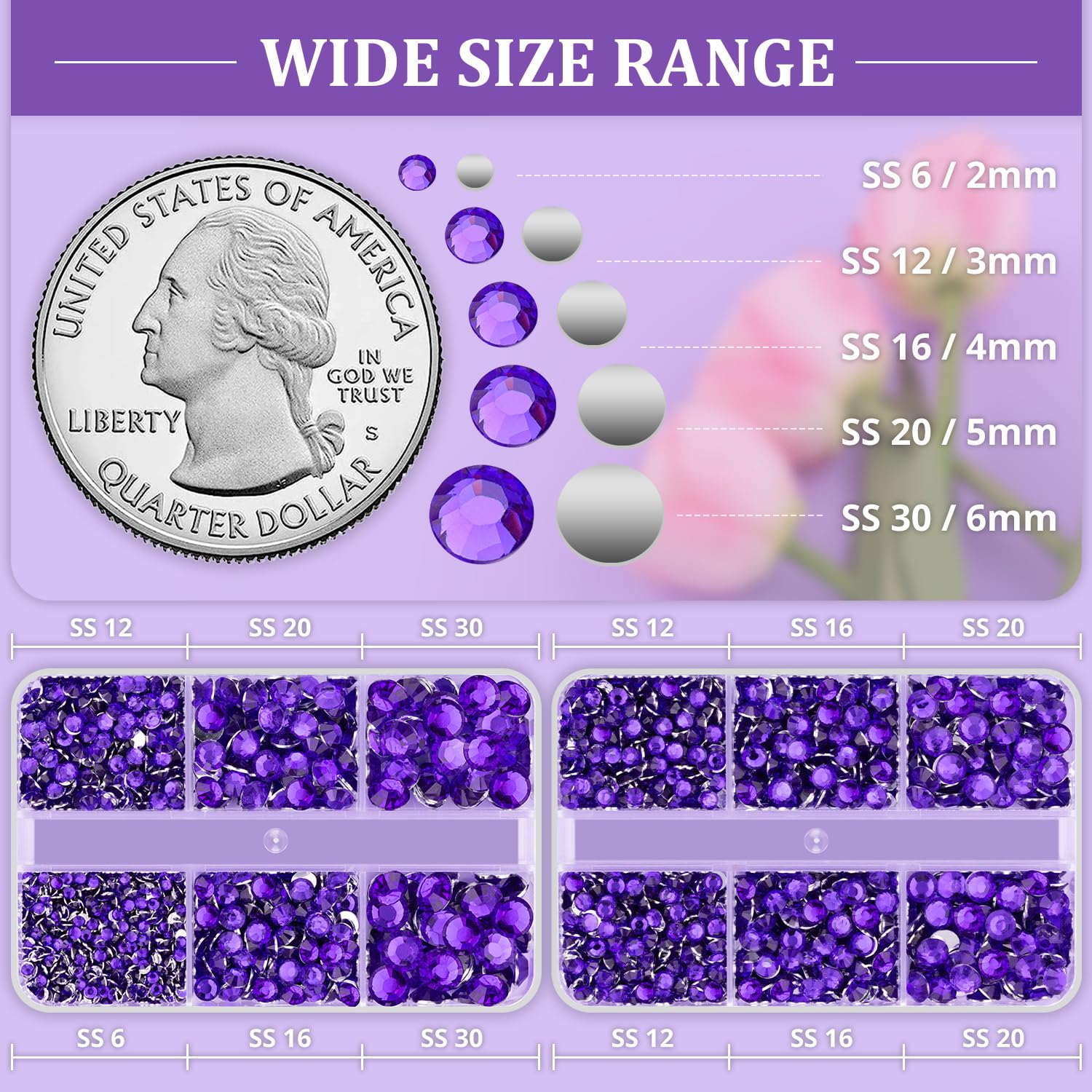 Resin Rhinestones for Crafting, 2 Boxeses Purple Multi Sizes Flatback Bedazzling Crystals for Crafts Nail Art Deco, Non Hotfix Gems Charms for Tumbler Shoes Clothing Fabric Face Makeup