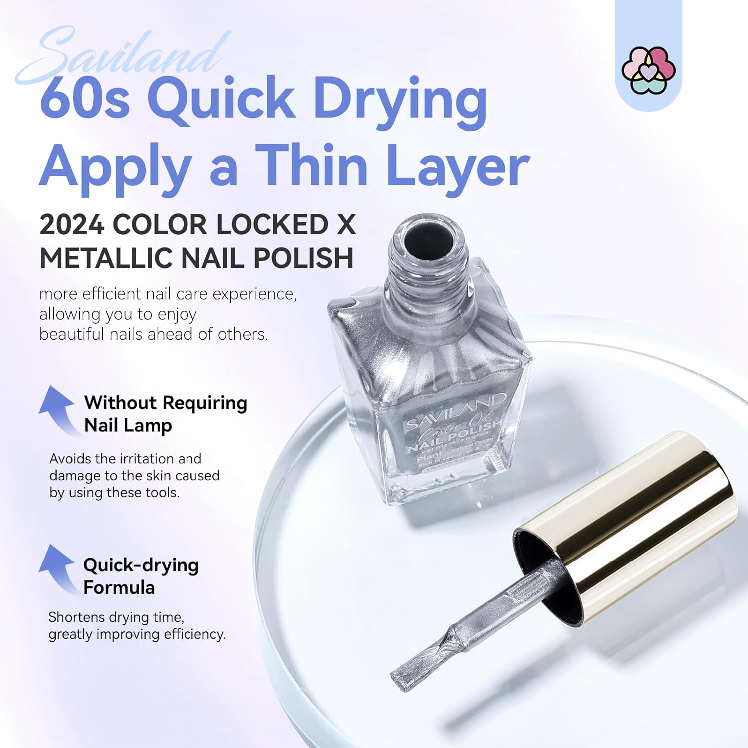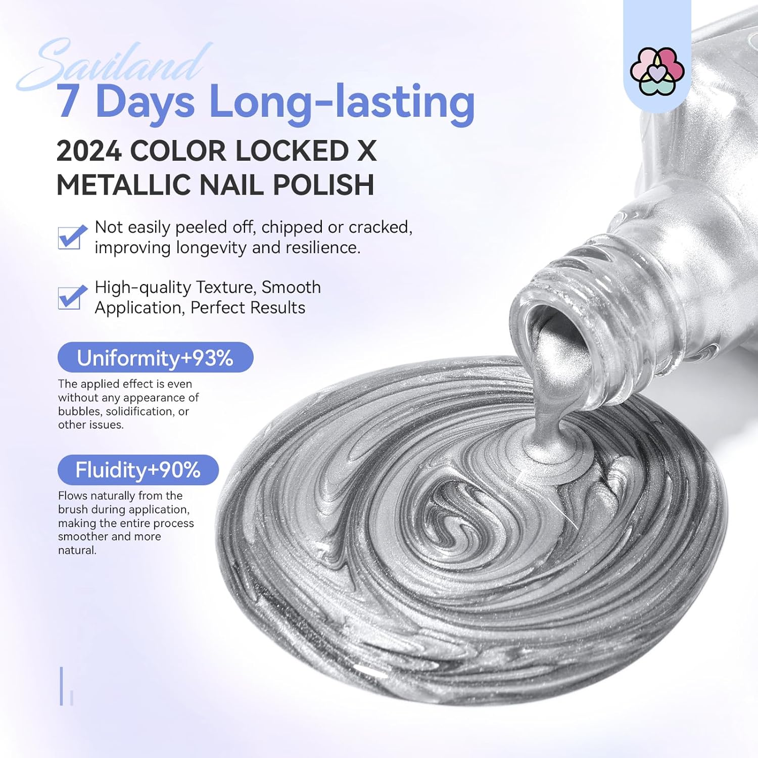 - Shiny Metallic Nail Polish: SAVILAND Silver Nail Polish, featuring a metallic chrome finish and Colors Locked X technology, offers a long-lasting, dazzling shine and unique texture for a standout manicure