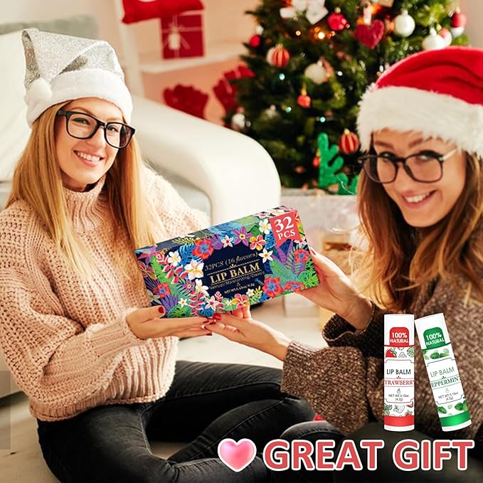 32 Pack Lip Balm, Natural Lip Balm Bulk with Vitamin E and Coconut Oil, Hydrating Lip Balm for Dry Lips, Bulk Lip Balm for Stocking Stuffers - 16 Flavors