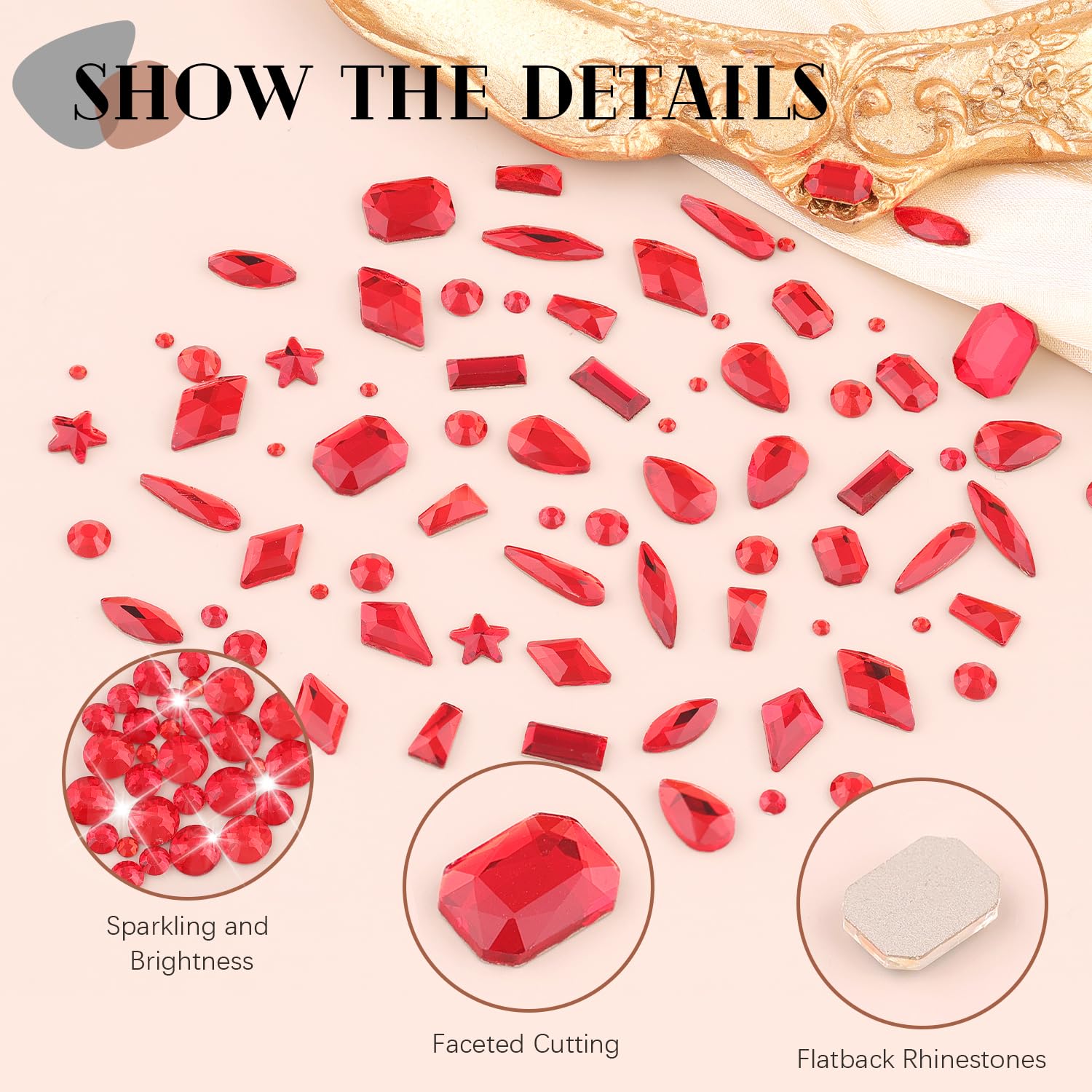 - đź’ŽPACKAGE CONTENT -- The package contains 120Pcs multi shapes flatback gems crystal and 3100Pcs 1.5-4mm round beads, totally 3220Pcs Red rhinestones. Additionally, 1 tweezers for large size gems and 1 pickup pen for small size gems. This rhinestones kit makes it easy for you to make any nail art you like, and will bedazzle your acrylic nails!