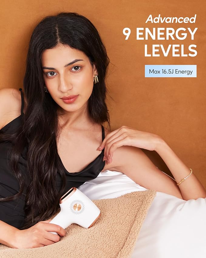 - 【Effective IPL Hair Removal】They zap away unwanted hairs at their roots, which significantly slows down regrowth for smoother skin. With 5J/cm² high energy and a 600nm wavelength, the device delivers light deeper into the hair follicles, effectively damaging them to reduce hair growth over time. This offers longer-lasting results compared to shaving or waxing.