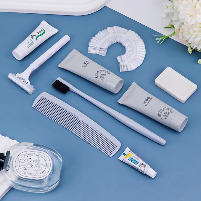- More sets to match: our hygiene travel kit comes in a pack of 12 sets. Each travel size hygiene products bulk set consists of a Toothbrush, toothpaste, shaver, Shaving cream, comb, bath gel, shampoo, soap and bath cap. 9 items in a set. personal care travel size toiletries make it even more comprehensive, convenient and comfortable to use.