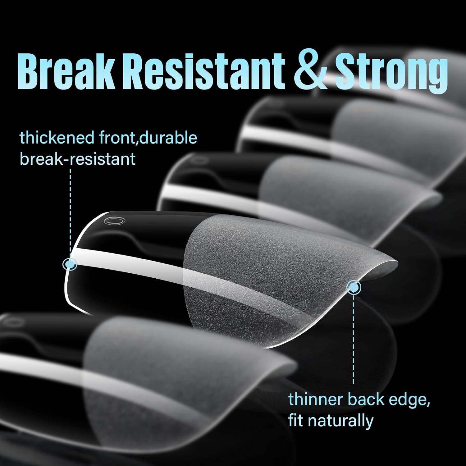 - 【Perfect Fit】 Full cover fake nails adopts a "front edge thick-back edge thin" design. The thickened gel nail tip edge will not crack and lift up at will during use, has a longer service life; the thinner pre-formed nail rear edge can fit the nail better, which will not make you feel uncomfortable. At the same time, The breathability of the nail plate is better, and it will not cause burden and pressure on your fingers.