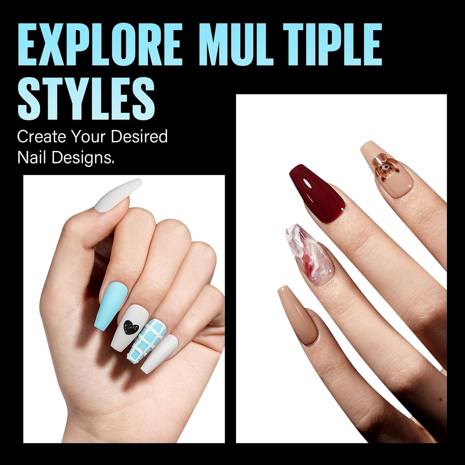 - 【Soft Acrylic Nail Tips】TOMICCA gel nail tips are made of Soft Acrylic material, which has strong toughness and ductility and are not easy to break, The non marking design also makes the nail color more symmetrical, which can DIY your ideal nail effect.