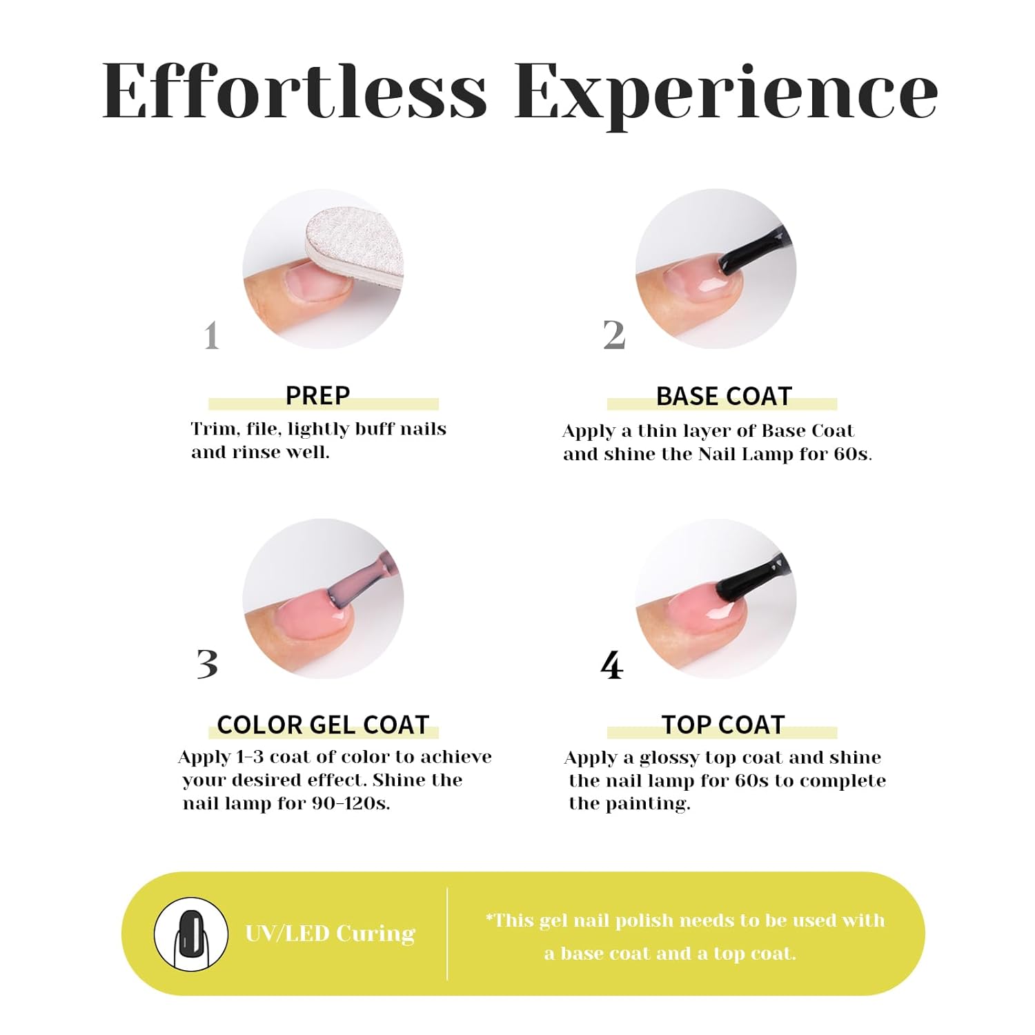 - Quick curing with UV lamp: To achieve the best results, this gel nail polish requires a UV lamp for curing. The UV light helps to speed up the drying process, ensuring a glossy and chip-resistant finish.