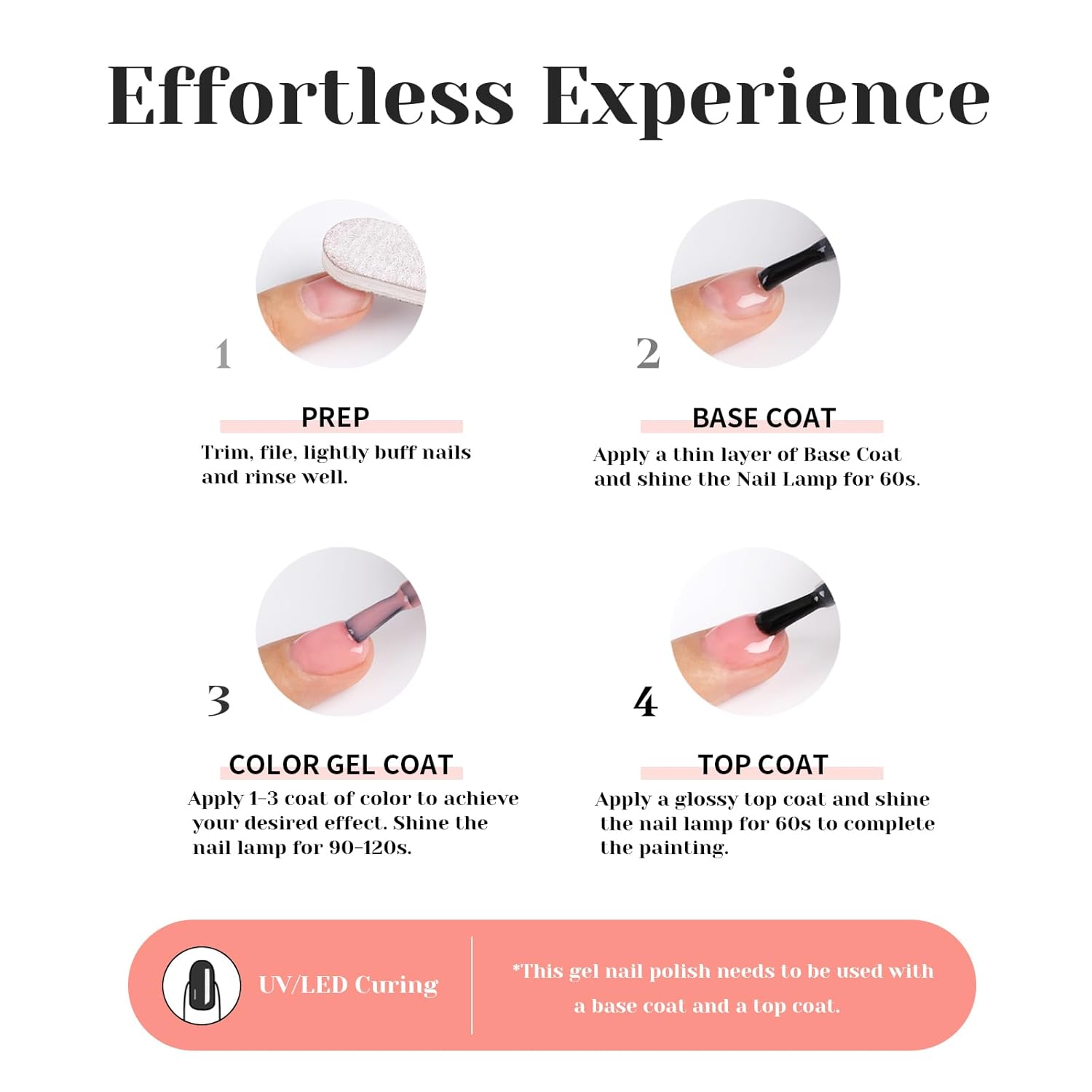 - Quick curing with UV lamp: To achieve the best results, this gel nail polish requires a UV lamp for curing. The UV light helps to speed up the drying process, ensuring a glossy and chip-resistant finish.