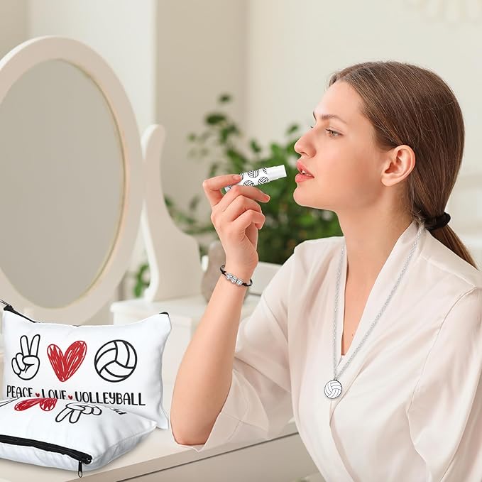 - Comprehensive Volleyball Themed Team Gifts: experience a versatile range of volleyball team gifts; This bulk set includes 12 make up bags, 12 compact mirrors, 12 lip balms, 12 lip balms holders, 12 necklaces, and 12 adjustable bracelets; A comprehensive set for your team gifts need