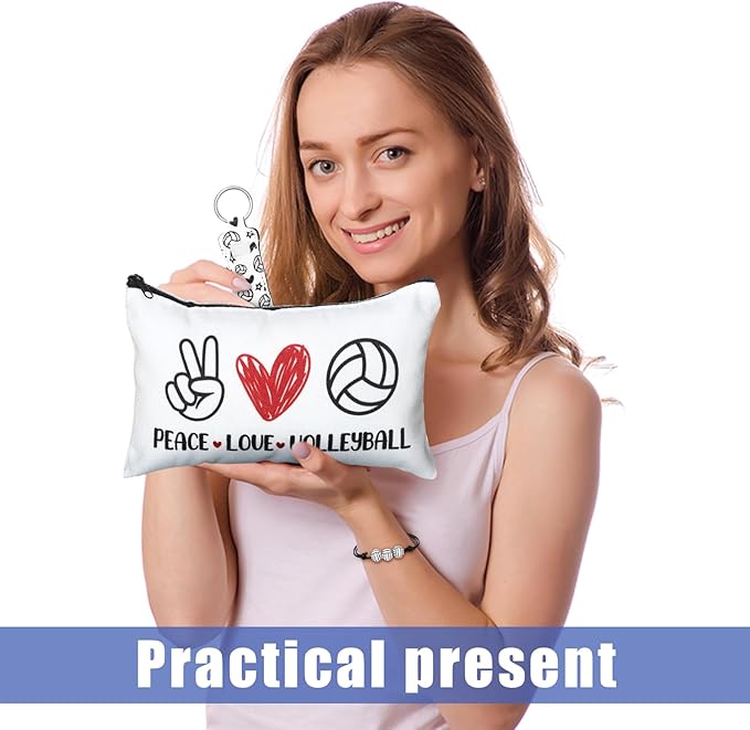 - Portable and Convenient: the cosmetic bag of our volleyball gifts for players measures about 8.27 x 5.12 inch, a suitable size to fit in your bag; The mirror about 2.76 inch in diameter and lip balms with holders are designed for compact size, and the necklace about 24 inch in length comes with a pendant that is about 0.71 inches in diameter, while the adjustable volleyball bracelet is about 5.12-11.81 inches; Add sporty style to your daily routine