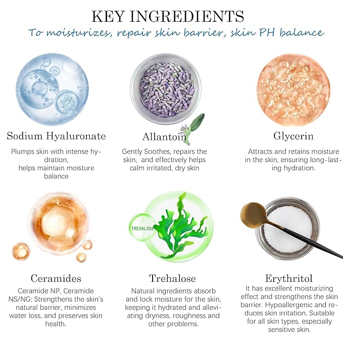 - Active Ingredients : Sodium hyaluronate, ceramides, allantoin, glycerin and amino acids.