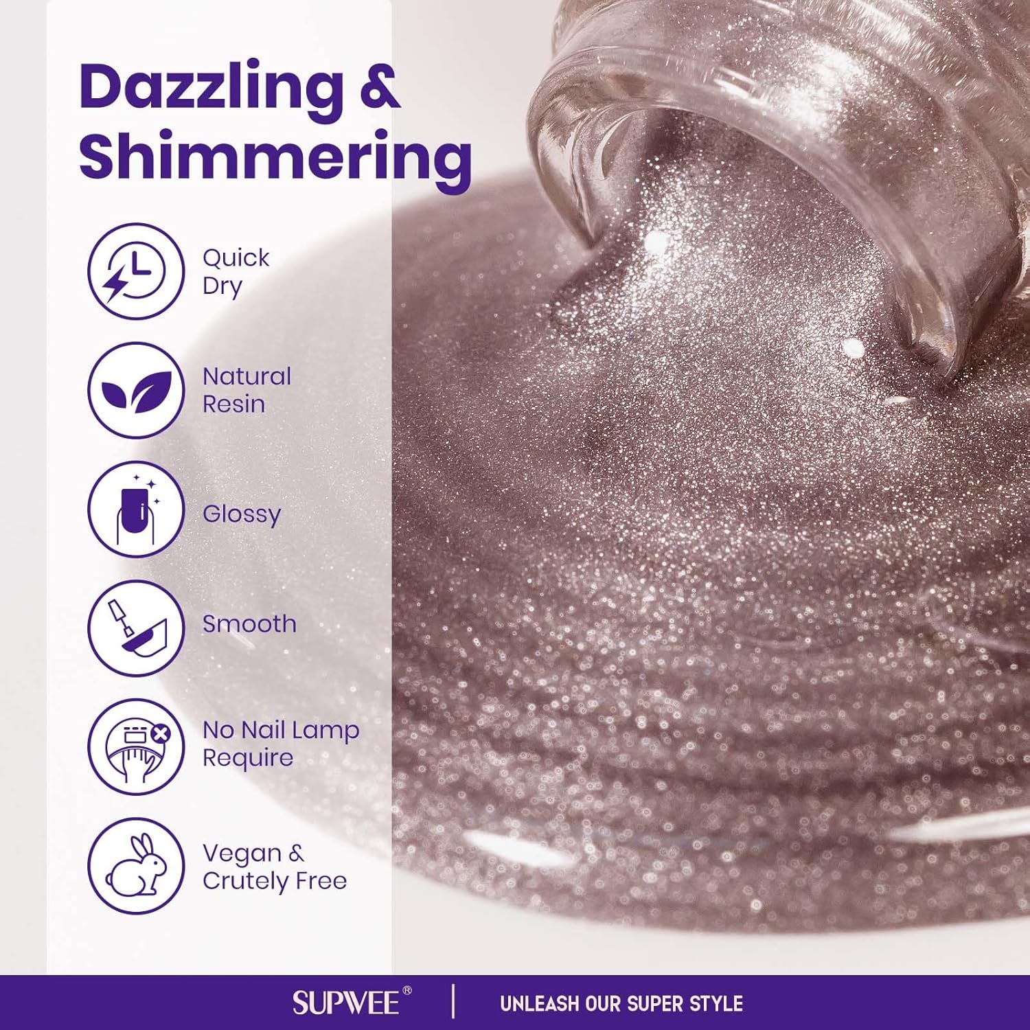 magnetic nail polish non gel, Nude Cat Eye Nail Polish Non Gel, Shimmer Glitter with Magnet, High Glossy, Fingernail Air Dry Fast, Manicure DIY, Salon Fall Colors