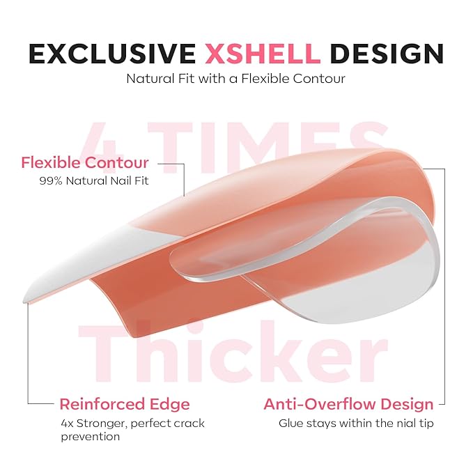 - Timeless French Design: Elevate your style with classic French featuring a natural, crystal-clear appearance. Ultra-thin edges (0.1mm) provide a snug fit, while reinforced tips (0.8mm) deliver lasting strength. The anti-spill back edge ensures a clean, mess-free application for a polished look.