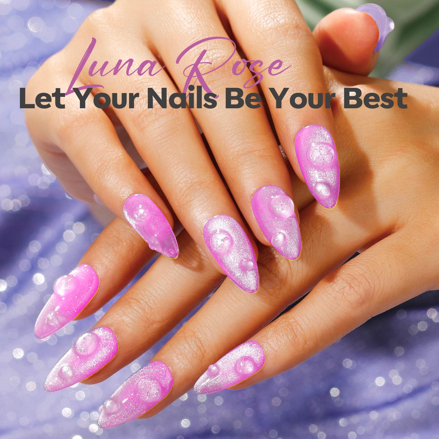 - Chromatic Allure: modelones Luna Rose nail polish is a dreamy blend of soft, mystical purple with ethereal shimmer. Inspired by moonlit waves, this mermaid-like shade shifts and gleams with iridescent, color-changing qualities, creating an enchanting effect on your nails