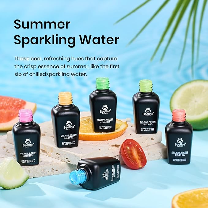 - 【Beetles 2025 Glitter Neon Gel Nail Polish Set】 The package includes 6 colors 7.5ML/ 0.25fl oz gel polish.These cool, refreshing hues that capture the crisp essence of summer, like the first sip of chilled sparkling water.