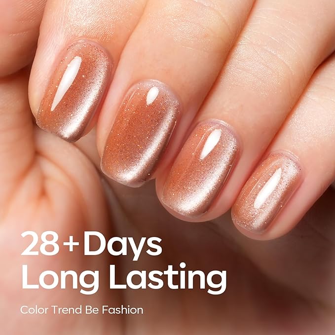 - Trendy Nude Cat Eye Gel: Modelones 6-color cat eye gel polish uses a magnet to create mesmerizing holographic effects. The galactic glitter shines brilliantly, even in dim light, for a stylish look year-round. Perfect for everyday wear or special occasions