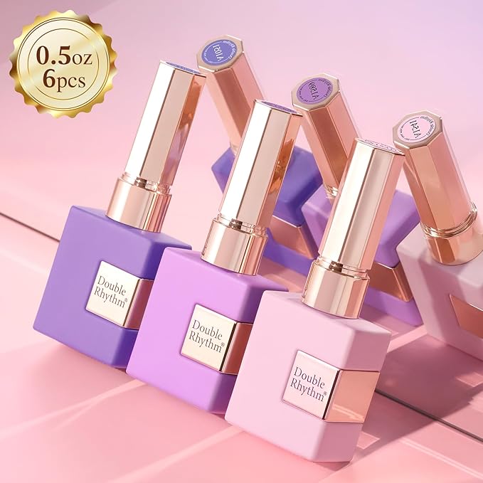 Double Rhythm 6 Pcs 15 ML Gel Polish Set Same Color Same Bottle Soak Off Gel Polish Kit Nail Art Manicure Salon DIY at Home for Women (Light Dark Purple Violet Rose Pink-T6-16)