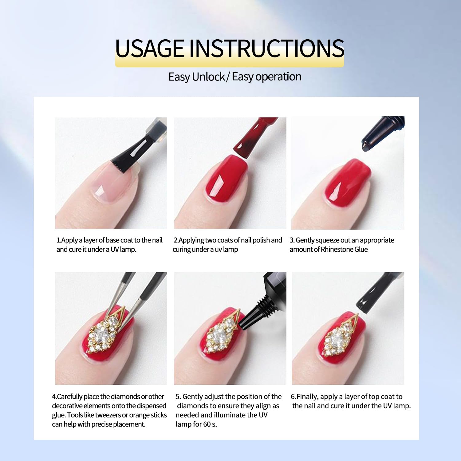 - Long-Lasting Durability: Say goodbye to constantly worrying about your rhinestones falling off.Rhinestone glue gel offers exceptional durability, keeping your nail art looking flawless for a long time. It's perfect for those who lead an active lifestyle or simply want their nail art to stay intact for days.