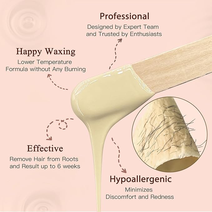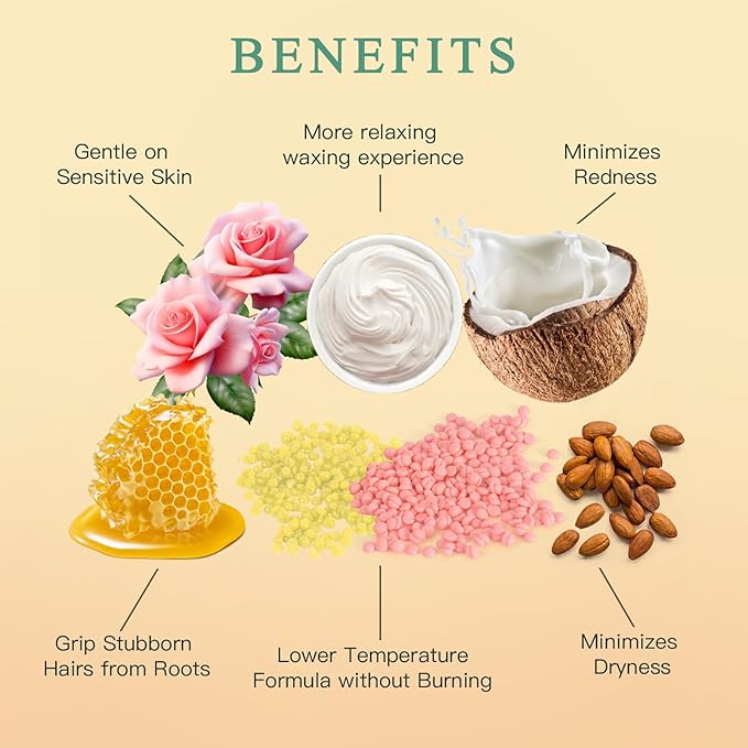 - 【Waxing Beads for Sensitive Skin】BOUVETAN hard wax beans are specifically formulated with hypoallergenic ingredients. They are meticulously designed for sensitive areas hair removal like the bikini line and underarms