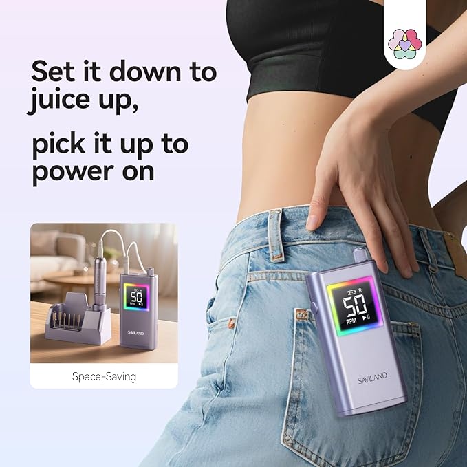 SAVILAND Advanced 50000 RPM Nail Drill Professional: 10S Fast Removal Electric Nail File Portable Nail Filer Electric with Rechargeable Electric Nail Drill Bits Pro Acrylic Nail Manicure Nail Tools