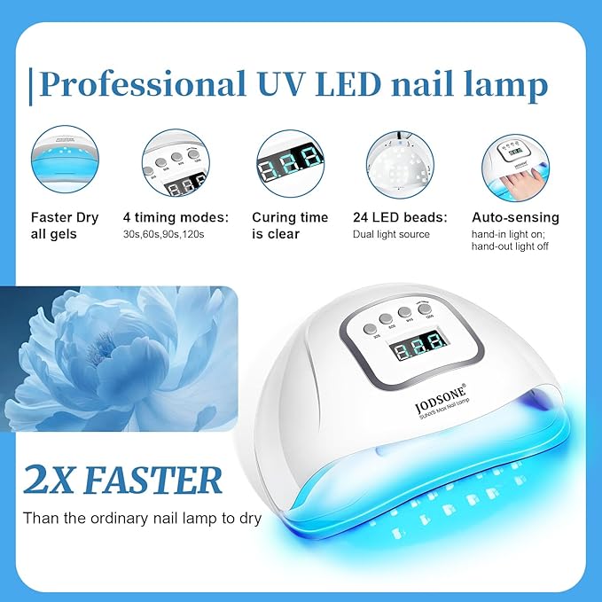 - Easy to Use: It needs to be cured under the nail lamp, this nail lamp has 4 curing modes,30s,60s,90s and 120s. Choose the curing time according to the coating, usually 90-120s can achieve the ideal effect.